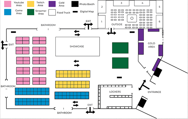 activities across the convention floor. The layout allows visitors to easily navigate between